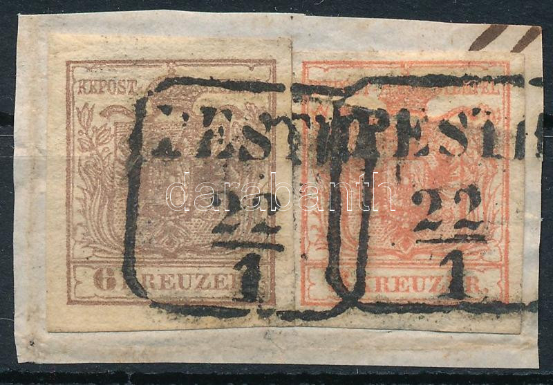 Leírás: 1850 3kr I.b 2x tip. + 6kr III. 2x tip kivágáson (MBK 97 p)