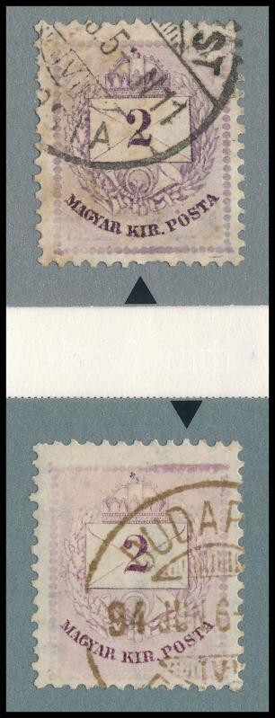 Leírás: 1881 2 db 2kr II. típus klf vésésjavításokkal, nagyon ritka (ex Orbán, Sebestyén aranyérmes kiállítási anyagból)