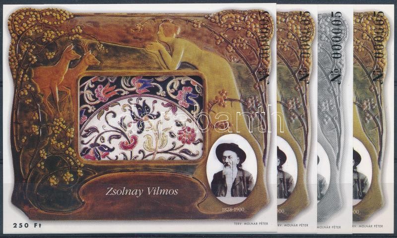 Leírás: 2000/38 Zsolnay Vilmos 4 db-os emlékív garnitúra azonos sorszámmal (20.000)