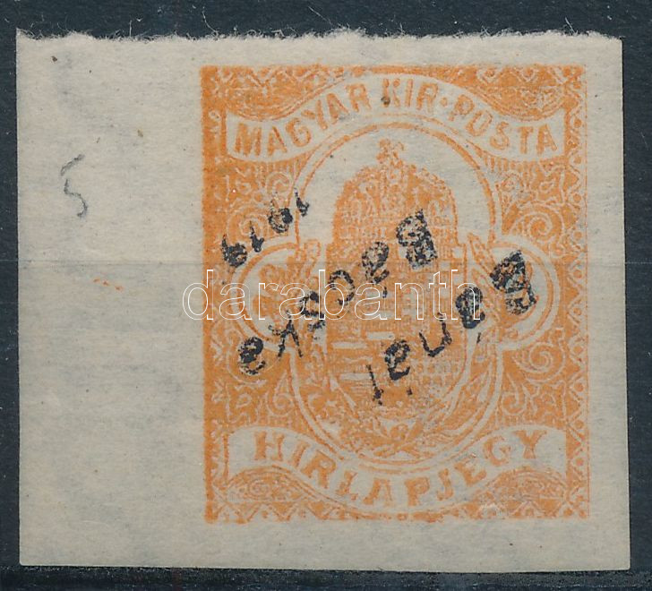 Leírás: Bánát-Bácska 1919 Hírlapbélyeg fordított felülnyomással, Bodor vizsgálójellel (15.000)