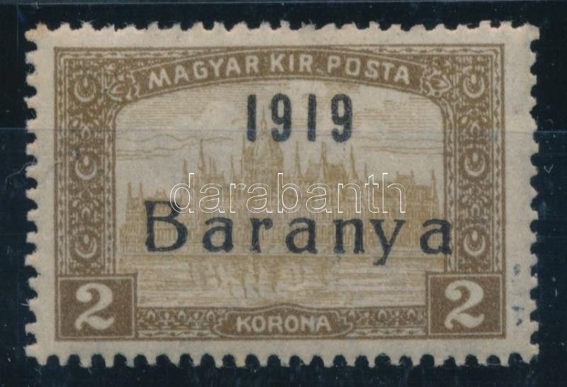 Leírás: Baranya I. 1919 Parlament 2K Bodor vizsgálójellel