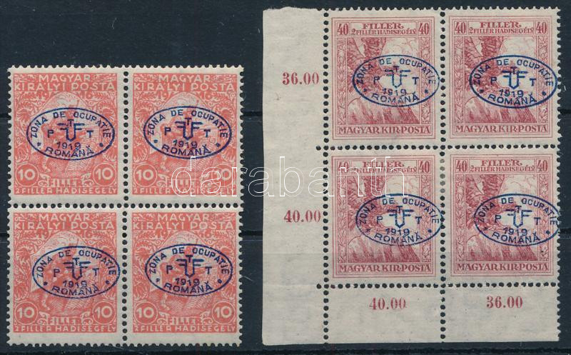 Leírás: Debrecen I. 1919 2 klf Hadisegély 4-es tömb / Mi 11,13 block of 4. Signed: Bodor