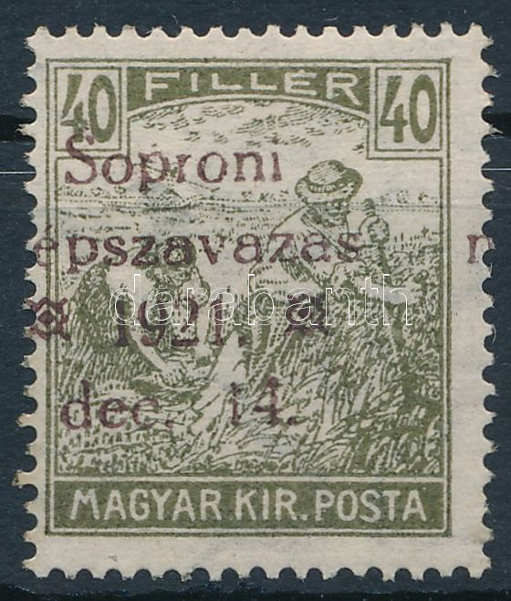 Leírás: Nyugat-Magyarország VIII. 1921 Arató 40f elcsúszott felülnyomással / Mi III. with shifted overprint. Signed: Bodor