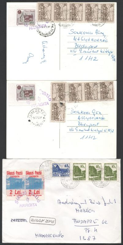 Leírás: 1992 3 db küldemény Sikaszó Panzió és román bélyegekkel Budapestre