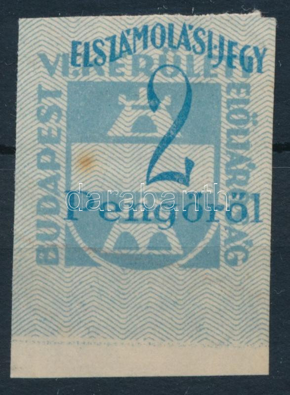 Leírás: 1945 Budapest VI. ker. elszámolási jegy 2P próbanyomat, elcsúszott értékszámmal