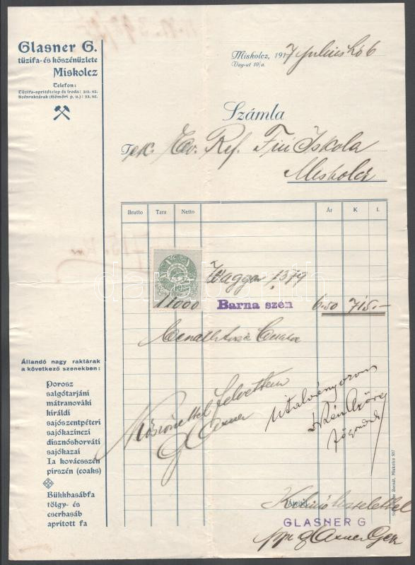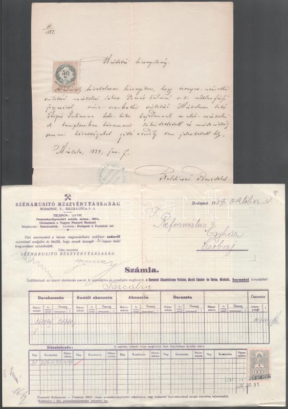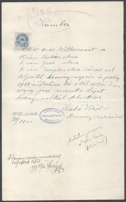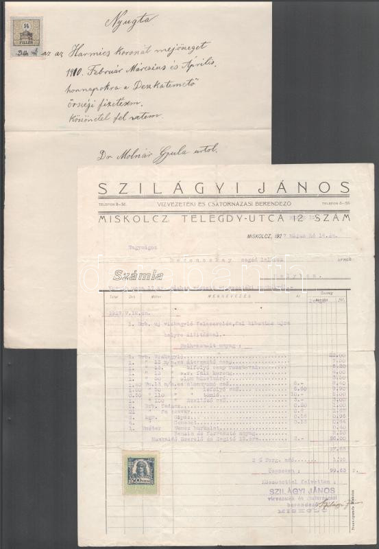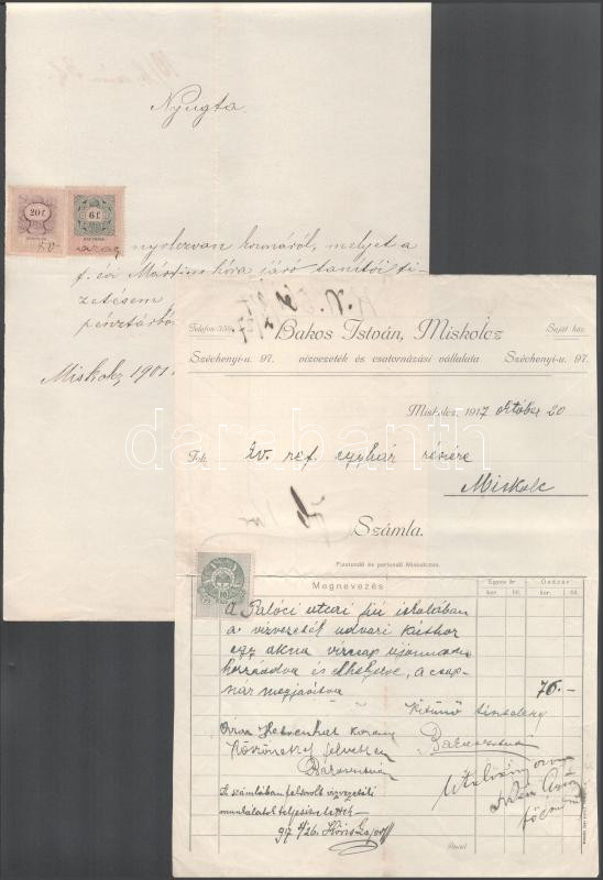 Leírás: ca 1870-1920 10 db Miskolc környéki okmánybélyeges irat többféle kiadásból