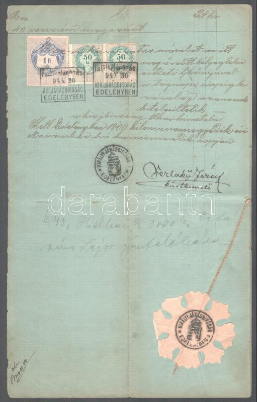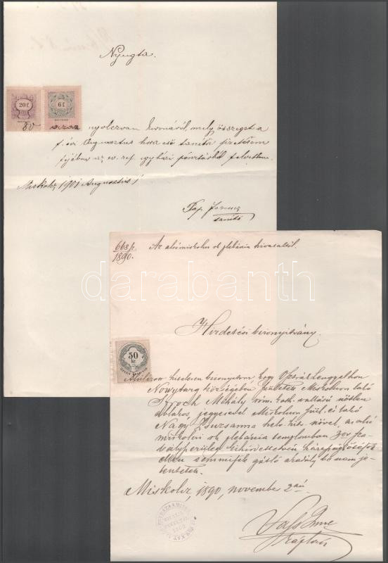 Leírás: ca 1870-1920 10 db okmánybélyeges irat többféle kiadásból