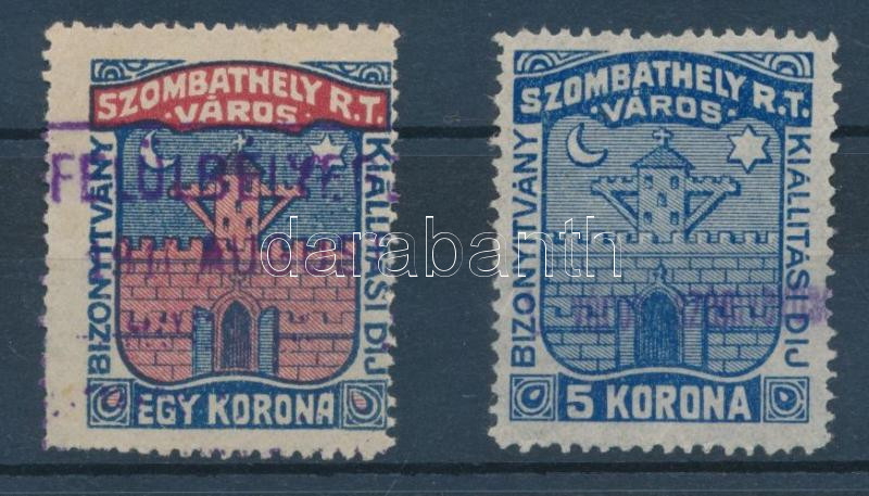 Leírás: ca 1930 Szombathely városi illetékbélyegek 1K, 5K