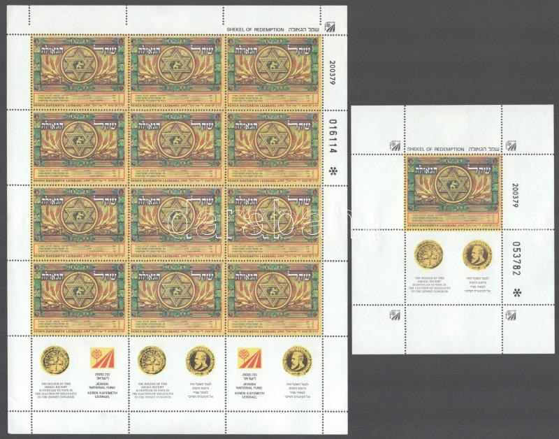 Leírás: Izrael Zsidó Nemzeti Alap adománybélyeg teljes kisív + blokk