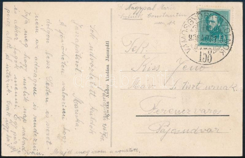 Leírás: 1934 Képeslap "VÁMOSGYÖRK-SZOLNOK" vasúti mozgóposta bélyegzéssel / Postcard with railway postmark