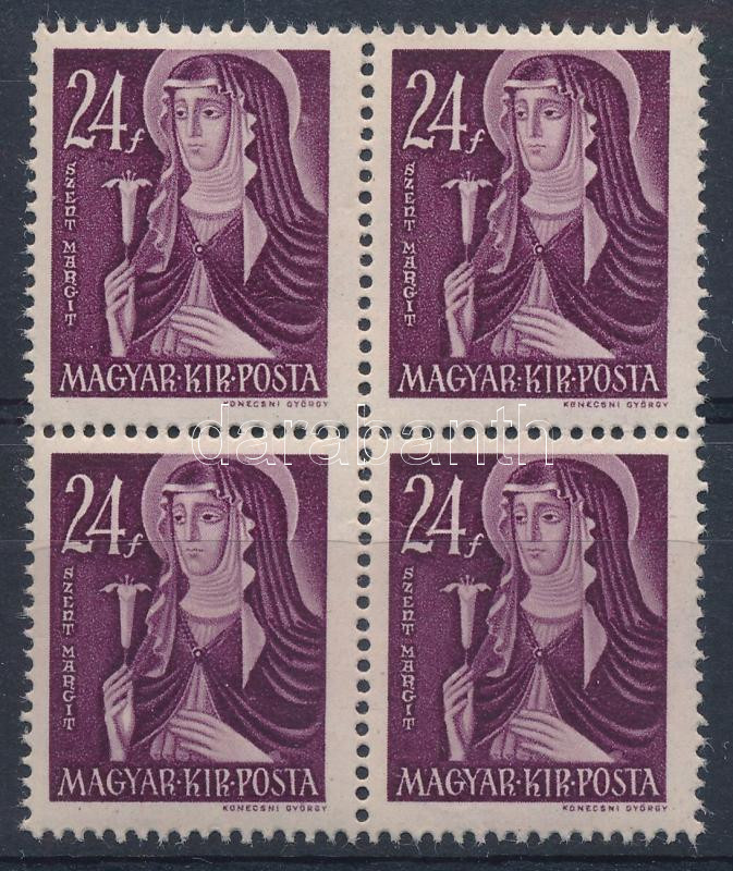Leírás: 1944 Nagyasszonyok 24f négyestömb "fehér tenyér" tévnyomattal