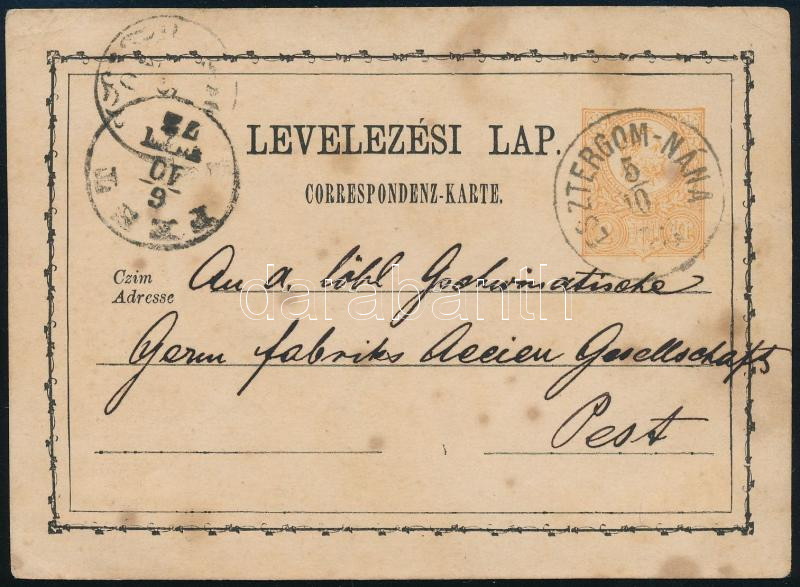 Leírás: 1873 2kr díjjegyes levelezőlap "ESZTERGOM-NÁNA" - Pest