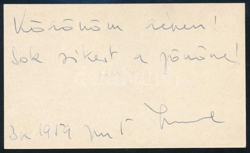 Leírás: 1959 Eck Imre (1930-1999) Kossuth- és Liszt Ferenc-díjas táncos, koreográfus, a Pécsi Balett alapítójának autográf aláírása és sorai névjegykártyáján