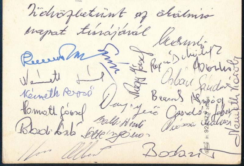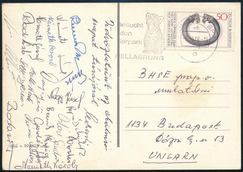 1976 A Magyar ökölvívó válogatott tagjainak aláírása NSZK-ból hazaküldött képeslapon Németh Rezső, Harmath József, Orbán Sándor, stb . / Autograph signatures of Hungarian boxing team members