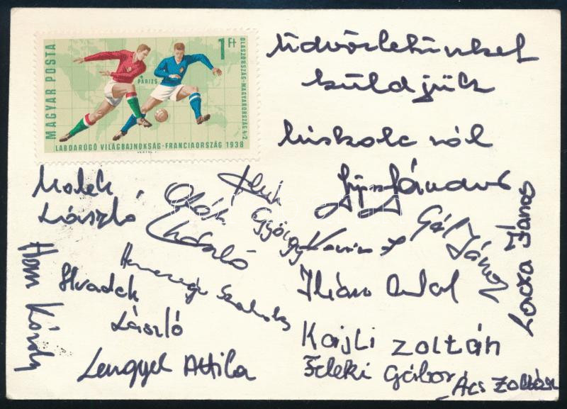 Leírás: 1981 A Vasas teremlabdarúgócsapat tagjai által aláírt képeslap Ihász Antal, Kajli, Lengyel Attila, stb