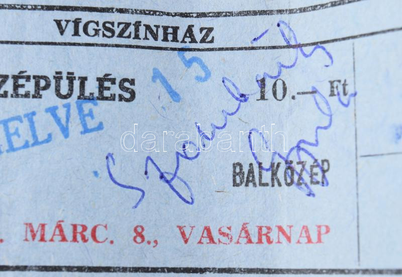 Leírás: Ruttkai Éva, Szakácsi Sándor, Szombathy Gyula, Lukács Gábor, és .. Gábor? színművészek aláírása színházjegyeken