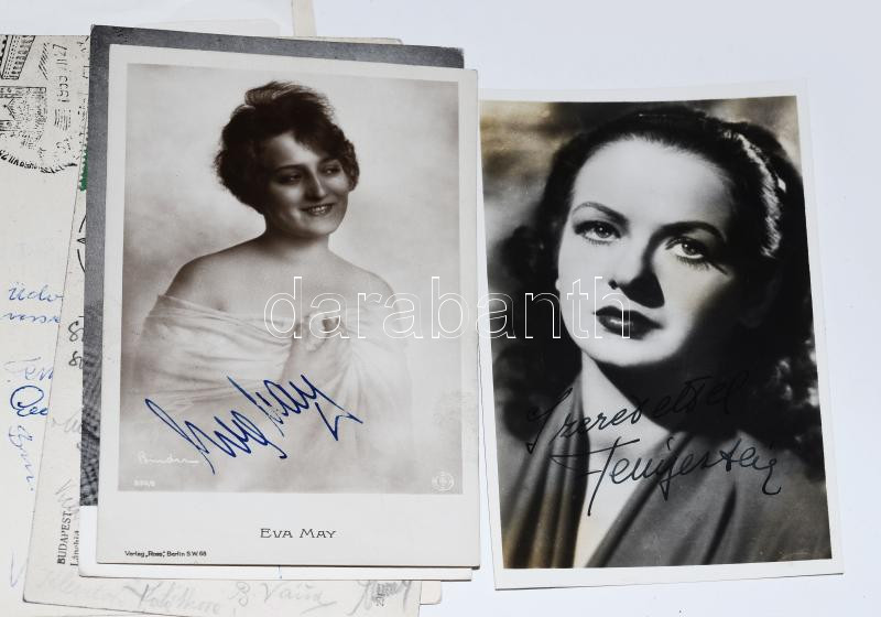 Vegyes aláírás tétel: színészek-színésznők, sportolók, zenészek, stb. aláírásai fotón, nyomtatványokon, FDC-n, stb., összesen kb. 20 db, átnézendő, érdekes anyag!