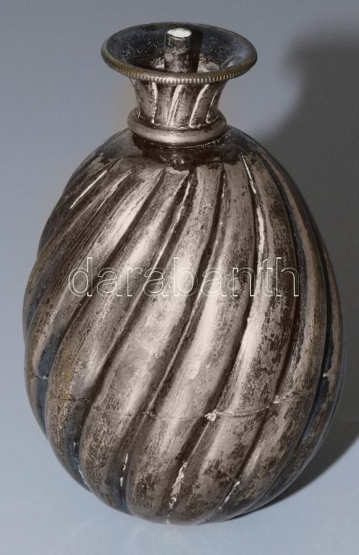 Leírás: Antik ezüstözött fém utazó tintatartó, fedele nélkül, m: 8 cm