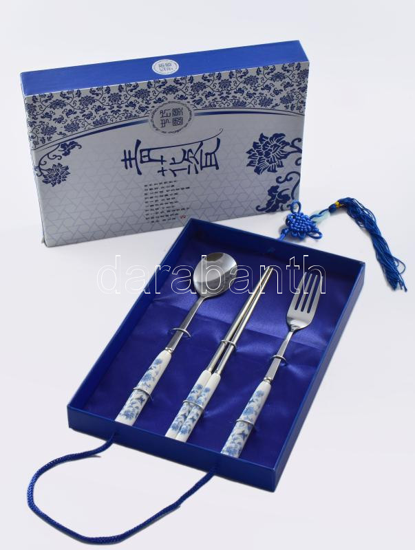 Leírás: Kínai egyszemélyes evőeszköz készlet, eredeti dobozában.