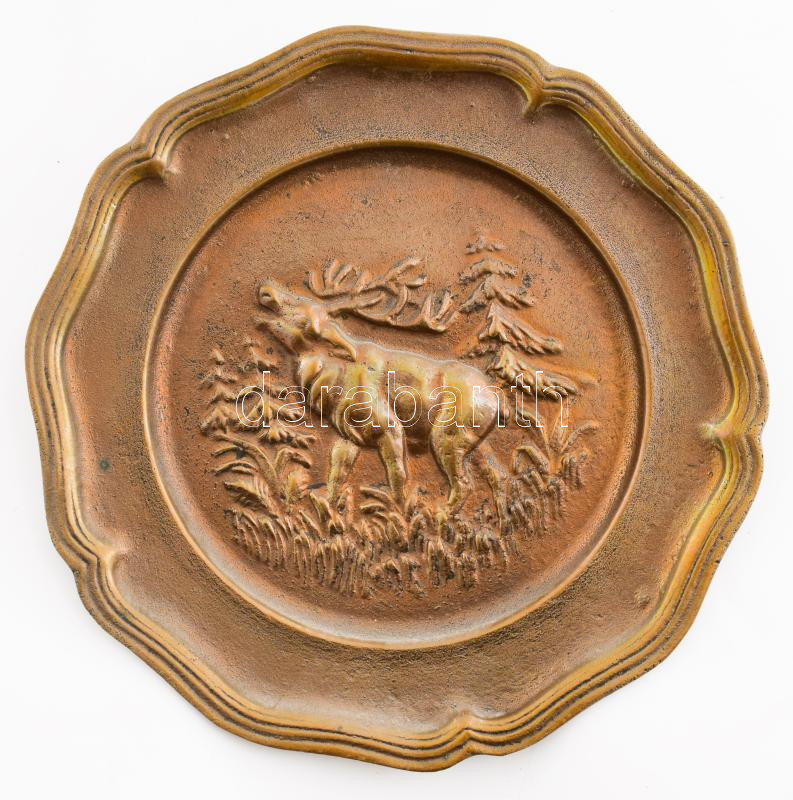 Leírás: Szarvasmintás masszív bronz dísztál, d: 22 cm