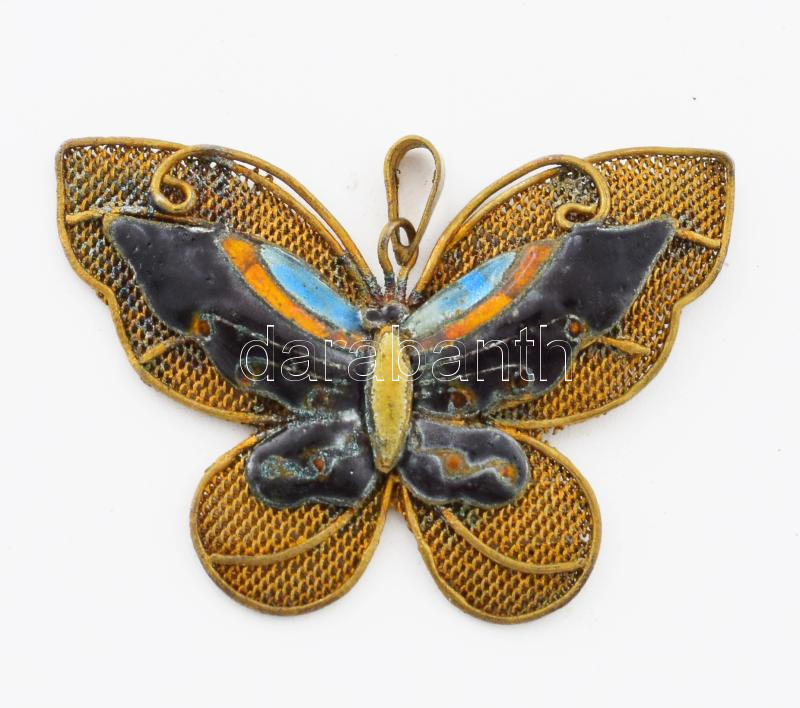 Leírás: Antik lepke alakú filigrán függő, patinás, 3x4 cm