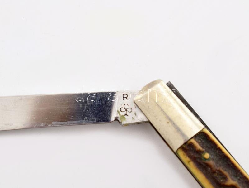 Leírás: R jelzéssel magyar agancsos szalonnázó bicska, nyitva h: 21 cm