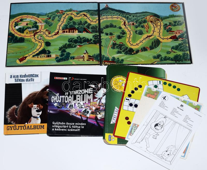 Leírás: Úttörő társasjáték tábla, 25x55 cm + vegyes játéktáblák, gyerekeknek szóló kiadványok, gyűjtőalbumok, össz. 6 db