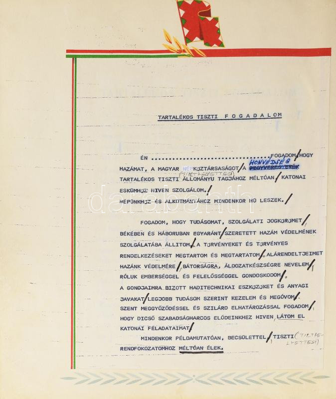 ca 1980 Tartalékos tiszt avatás esküszöveg dísz műbőr mappában https://www.darabanth.com/hu/504-Gyorsarveres/504.0/Mutargy-papirregiseg-egyeb/Militaria~1000014/ca-1980-Tartalekos-tiszt-avatas-eskuszoveg-disz-mubor-mappaban~II3426129