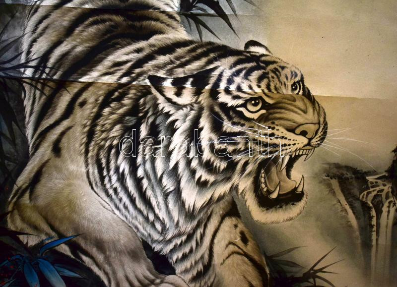 Leírás: Fehér tigris. Kínai művész fali kép. Jelzett 70x160 cm