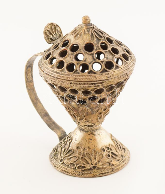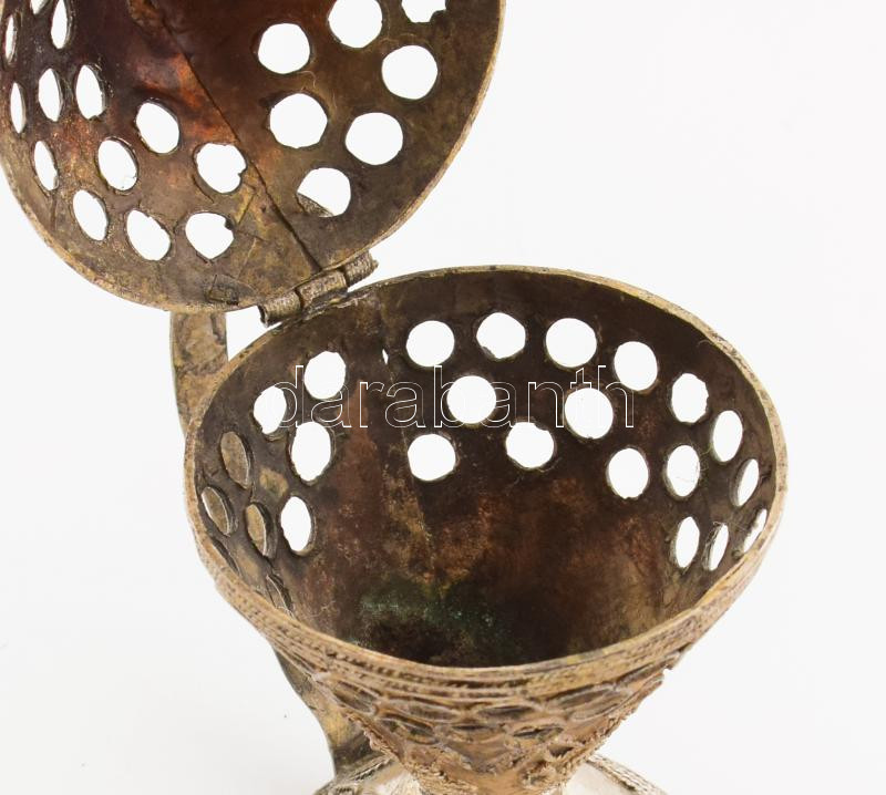 Leírás: Jemeni sétáló füstölő. Fémötvözet, Jemen, 20. sz. eleső harmada, ötvösmunka, m: 11 cm