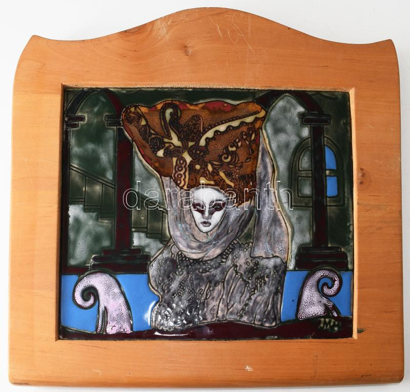 Leírás: Kaposváriné Mihályi Mária: Karnevál a vásznon. Tűzzománc kép, jelzett, fa keretben, 18x23 cm