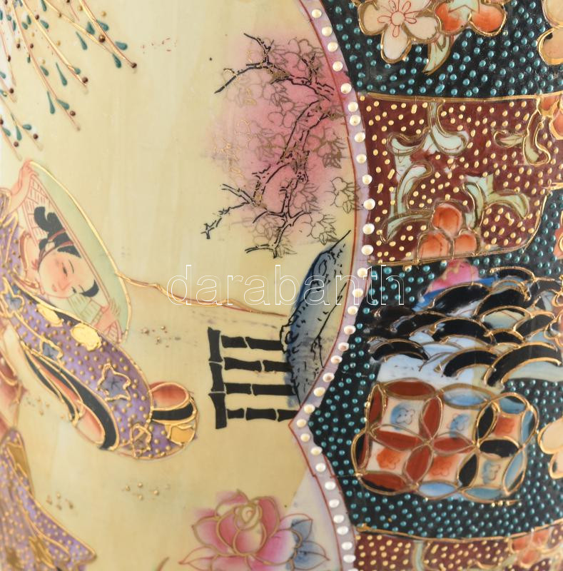 Monumentális, japán, Satsuma jellegű porcelán lámpatest, jelzés nélkül...