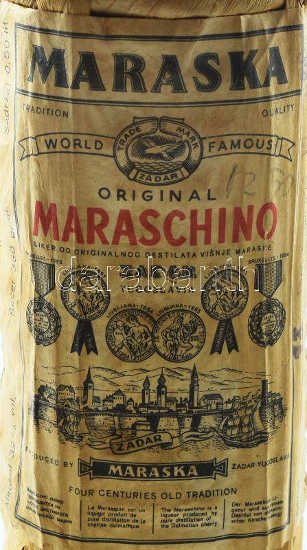 Maraska Zadar horvát cseresznyepárlat, 0,5l, 32%, bontatlan. https://www.darabanth.com/hu/504-Gyorsarveres/504.0/Mutargy-papirregiseg-egyeb/Muzealis-borok-italok~14/Maraska-Zadar-horvat-cseresznyeparlat-0-5l-32-bontatlan~II3424187