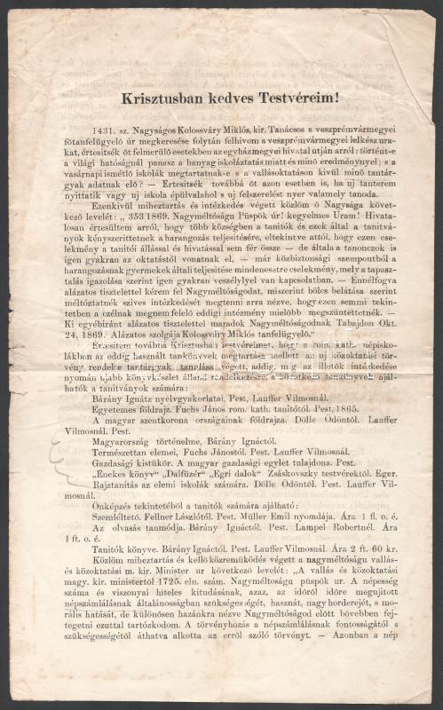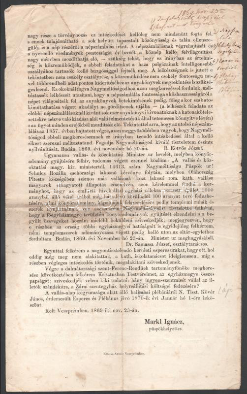 1869 Veszprém, Markl Ignác püspökhelyettes nyomtatott körlevele iskola... https://www.darabanth.com/hu/504-Gyorsarveres/504.0/Mutargy-papirregiseg-egyeb/Nyomtatvanyok~1000017/1869-Veszprem-Markl-Ignac-puspokhelyettes-nyomtatott-korlevele-iskolai-temaban-hajtott~II3423716