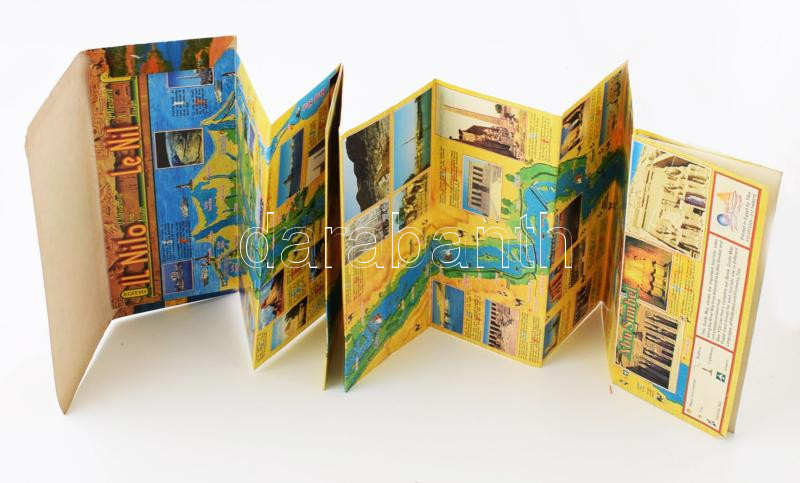 Plan du Nile d'Alexandrie á Aswan / Egyiptom, a Nílus térképe Alexandriától Asszuánig a látványosságok ismertetésével, francia és olasz nyelven, kihajtva: 136x24 cm