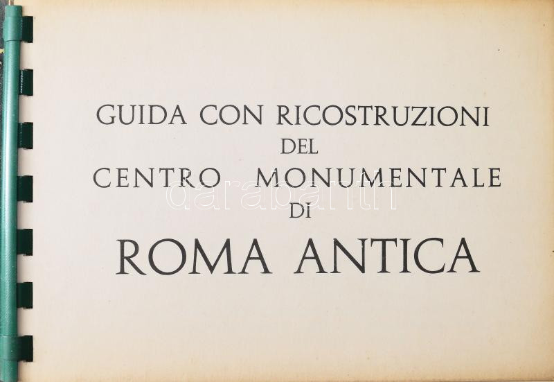 ca 1960 Roma Antica Guida con ricostruzioni del centro monumentale di Roma antica. 52p. képekkel és a képek előtt az eredeti állapotot bemutató áttetsző lapokkal. Műbőr kötés 16x12 cm