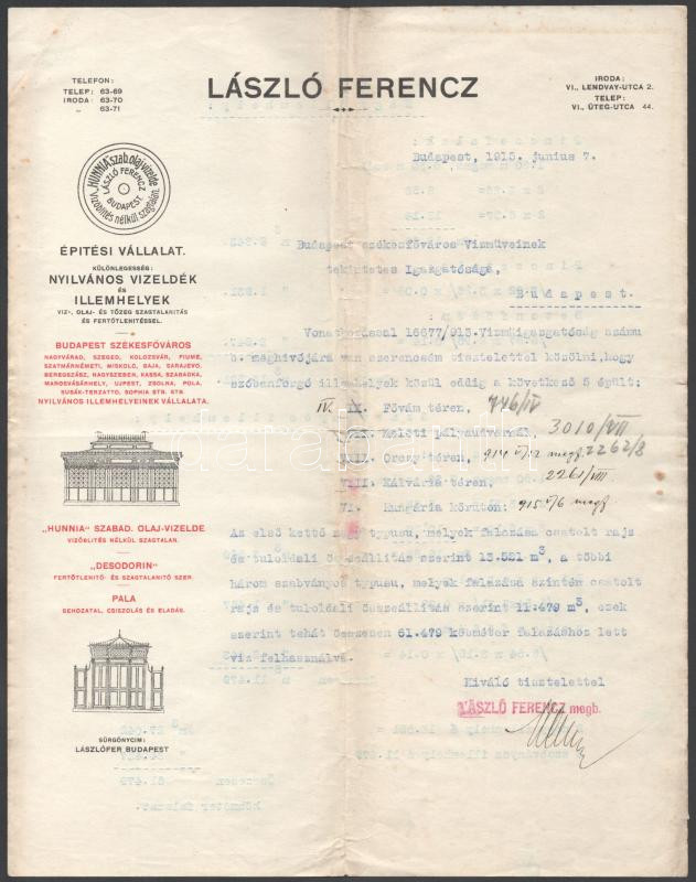 1915 Bp., László Ferenc Építési Vállalat fejléces levélpapírjára írt l... https://www.darabanth.com/hu/504-Gyorsarveres/504.0/Mutargy-papirregiseg-egyeb/Okmanyok~1000002/1915-Bp-Laszlo-Ferenc-Epitesi-Vallalat-fejleces-levelpapirjara-irt-level~II3423127