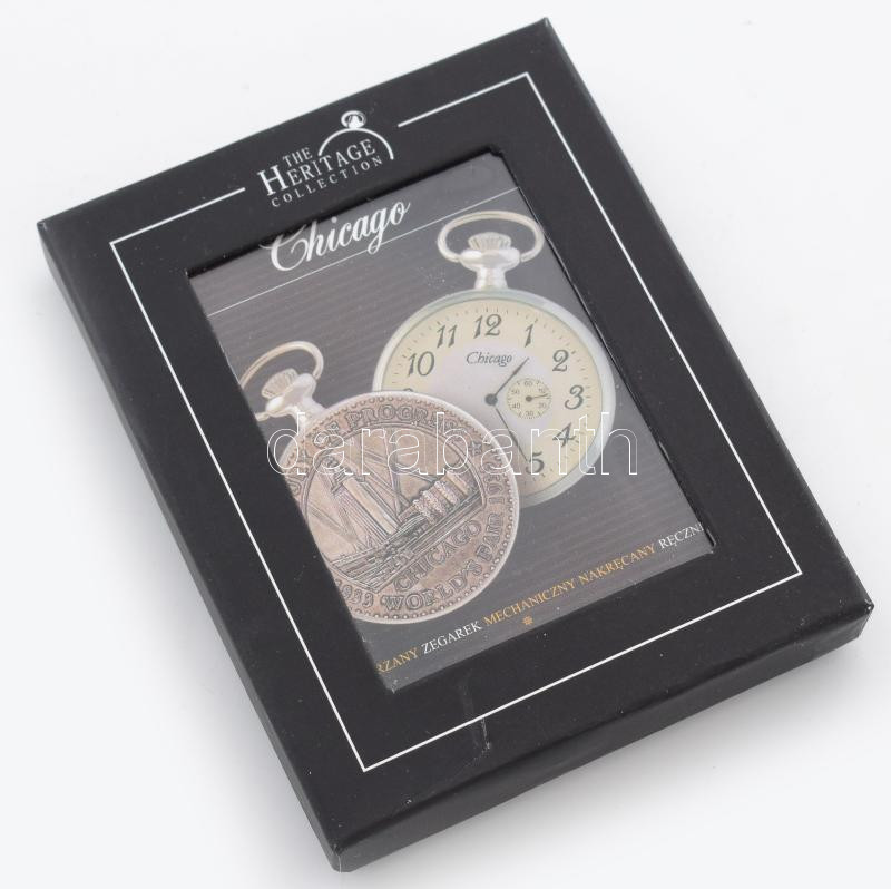 Leírás: The Heritage Collection "Chicago" zsebóra. Leírással, díszdobozban.