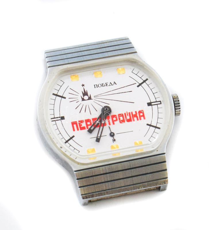 cca 1990 Pobeda "Peresztrojka" karóra, mechanikus, működik, ... https://www.darabanth.com/hu/504-Gyorsarveres/504.0/Mutargy-papirregiseg-egyeb/Orak~8/cca-1990-Pobeda-Peresztrojka-karora-mechanikus-mukodik-szij-nelkul-papirral-dobozaban~II3422637