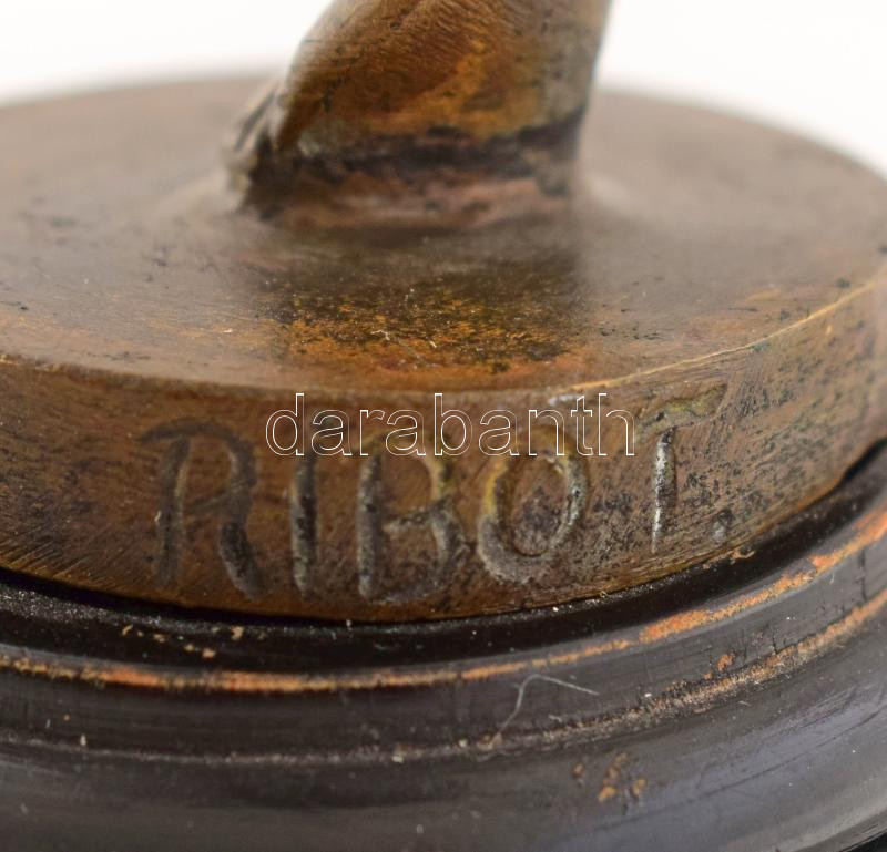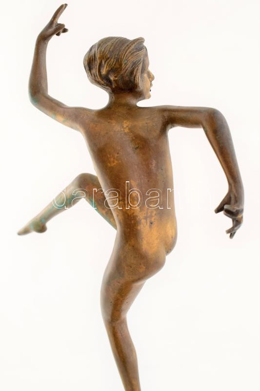 Bakonyi Sándor (1892-1937): Art deco táncosnő. Patinázott bronz, ebonizált fa talapzaton, jelzés nélkül, alján (utólag belekarcolt?) "Ribot" jelzéssel, kopással, m: 34 cm
