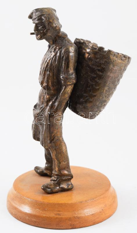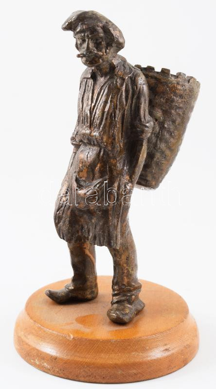 Leírás: Szüretelő férfi. Bronz szobor, fa talpon, m: 17 cm