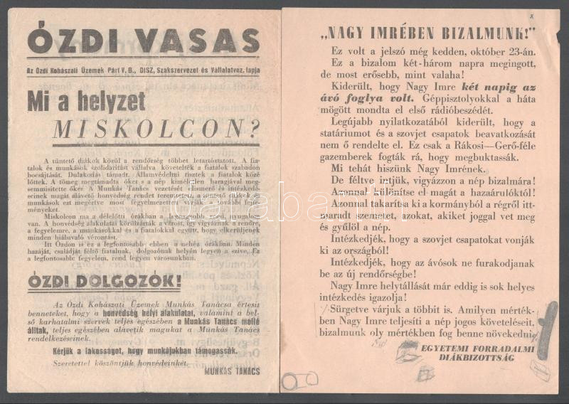 Leírás: 1956 3 db röplap, változó méretben és állapotban