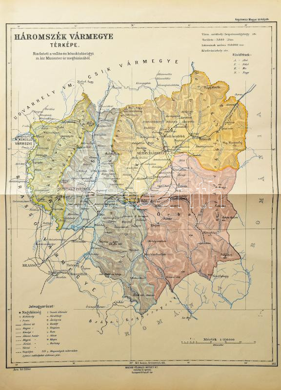 ca 1910 Háromszék vármegye térképe. 27x38 cm