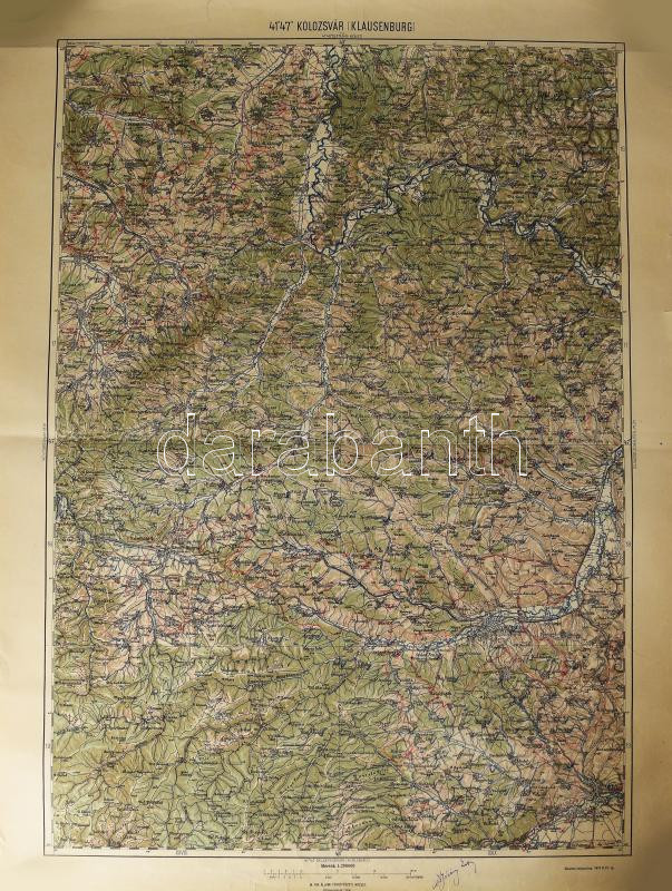 cca 1920 Kolozsvár (Klausenburg, Cluj) és környékének térképe, 1 : 200.000, M. Kir. Állami Térképészet, kisebb lapszéli sérülésekkel, feltekerve, 63x47 cm