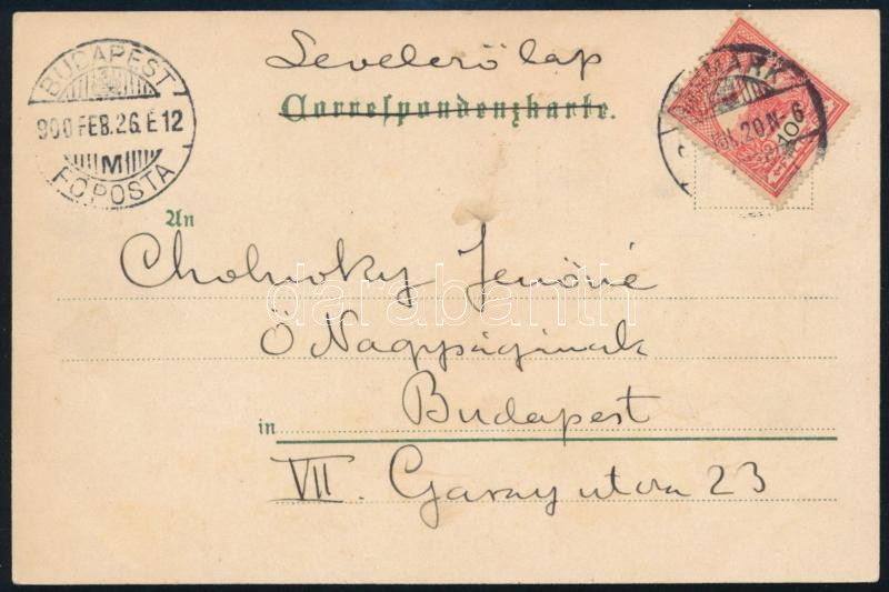 Leírás: 1900 Dr. Cholnoky Jenő (1870-1950) földrajztudós, író, autográf képeslapja feleségének