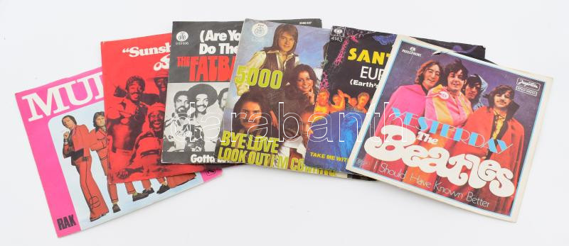 Leírás: 6 darab kisalakos bakelit, Osibisa, The Fatback Band, 5000 Volts, The Beatles, Santana, stb.