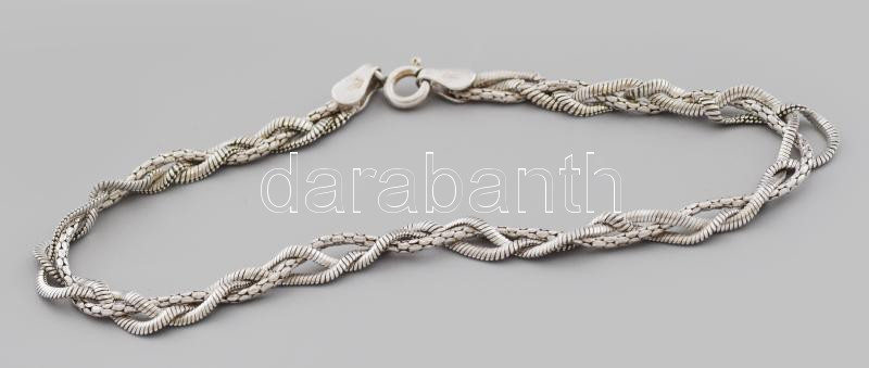Leírás: Ezüst(Ag) háromszálas fonott karkötő, jelzett, h: 21,5 cm, nettó: 5,1 g