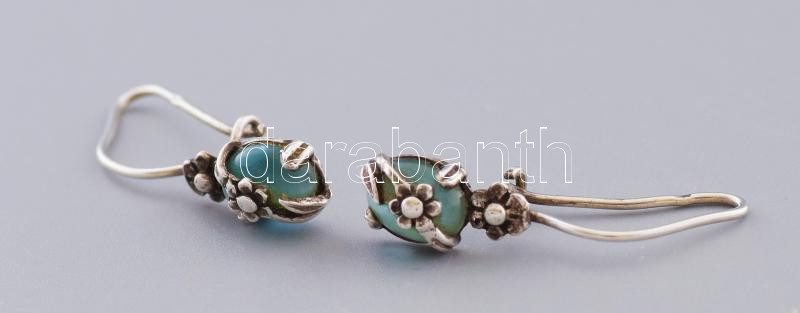 Leírás: Ezüst(Ag) opálköves, nefelejcsmintás fülbevalópár, jelzett, h: 3 cm, bruttó: 2,1 g