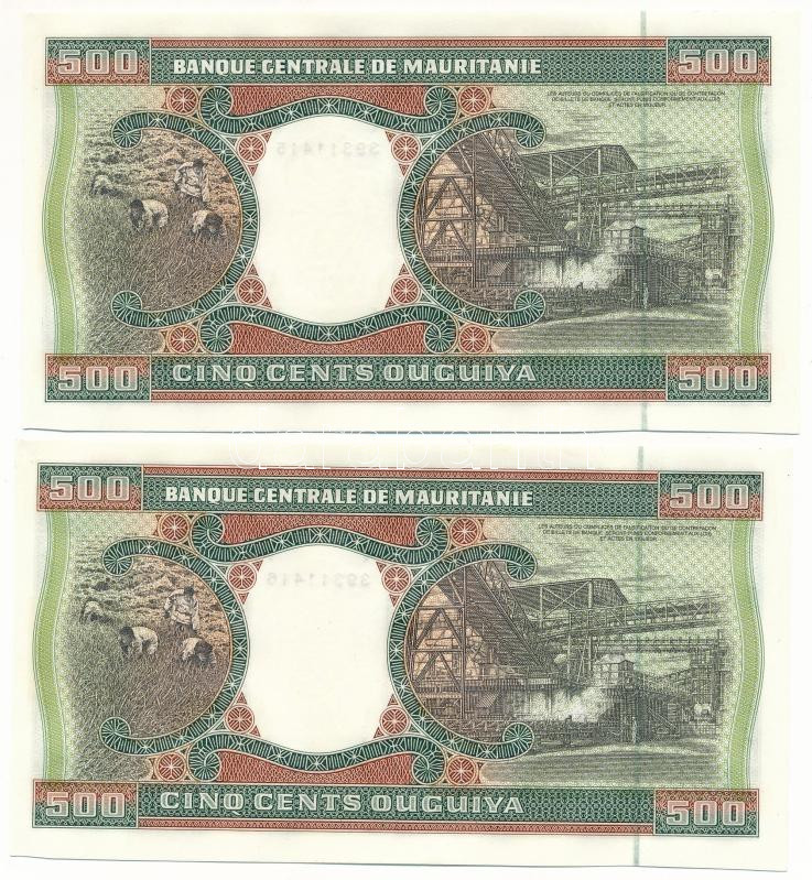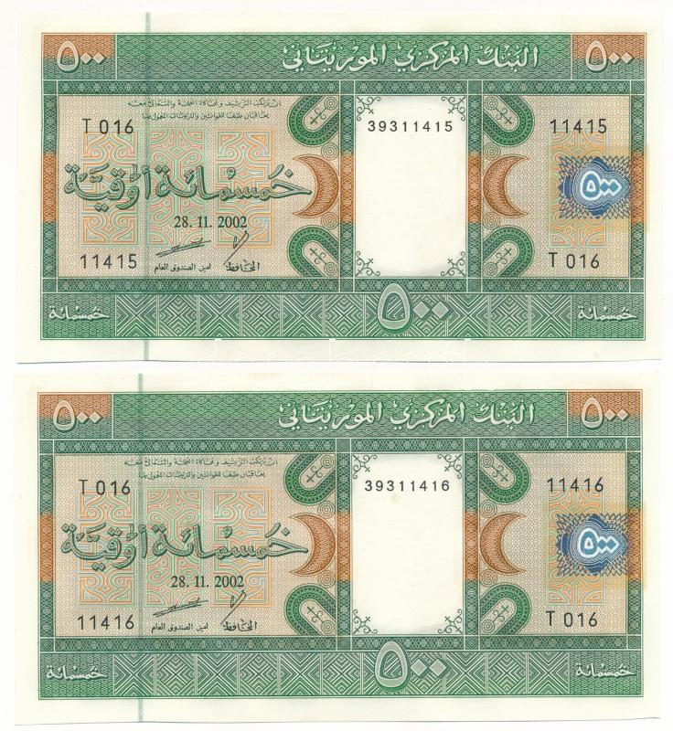 Mauritania 2002. 500 Ouguiya (2x) consecutive serials "T 016 39311415 - T 016 39311416" C:AU wavy paper