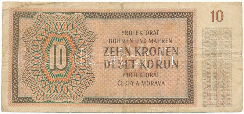 German Third Empire / Protectorate of Bohemia and Moravia 1942. 10 Korun "S.06A 312233" C:VG, small tears at the middle-cross